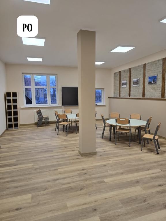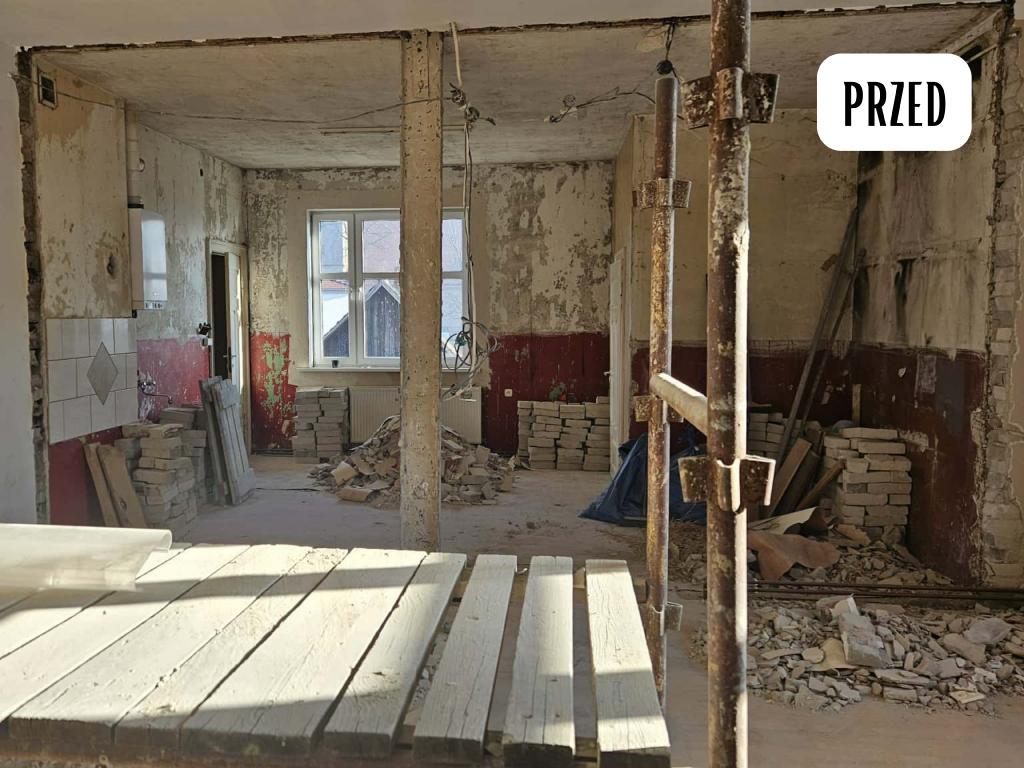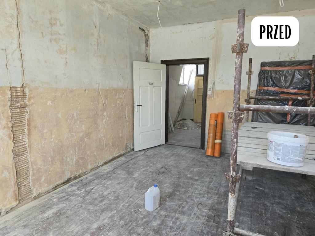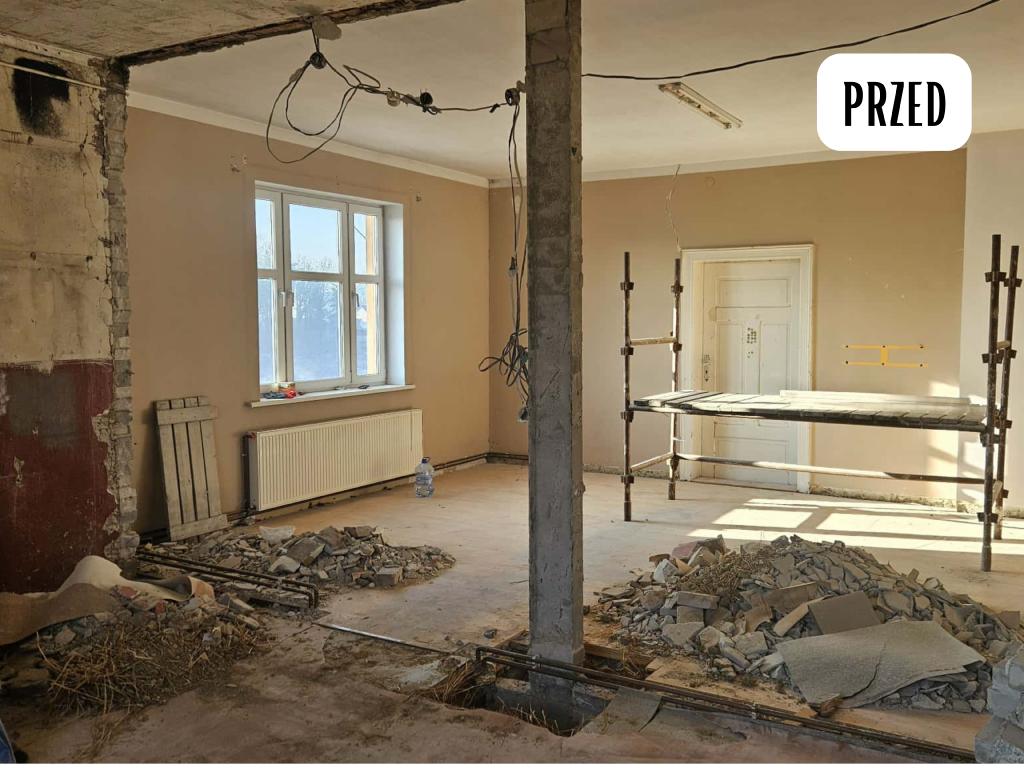 W ramach zadania wykonano remont pomieszczeń oraz klatki schodowej tj. wykonano prace rozbiórkowe, ułożenie siatki na ścianach, tynkowanie, malowanie, remont stolarki drzwiowej, wymiana okna, montaż nowej konstrukcji schodów wraz z montażem stopni i podestów drewnianych oraz wymiana instalacji elektrycznej.