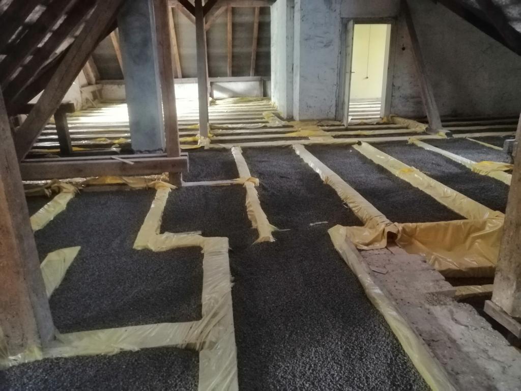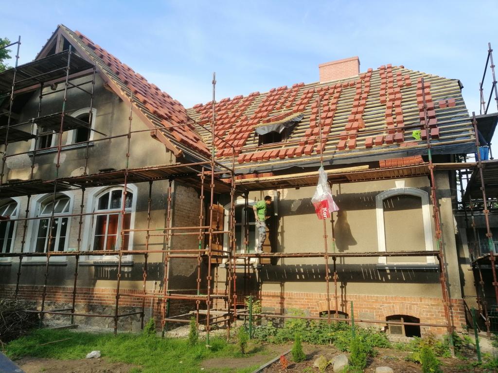 Informujemy Państwa o toczących się pracach w budynku szkoły podstawowej w Tuchorzy. W dniu 07.08.2025 r odbyła się kolejna rada budowy z udziałem Wykonawcy robót, kierownika budowy, inspektora nadzoru, przedstawicieli gminy i dyrektora szkoły. Obecnie po wymianie zdegradowanych biologicznie elementów konstrukcji drewnianej dachu trwa układanie nowego pokrycia dachowego – dachówki. Wykonawca wkuł przewody występujące na elewacji w ściany, na poddaszu budynku natomiast zdemontował starą instalację elektryczną i zostanie wykonana nowa instalacja. Wykonawcą zadania jest firma: Usługi Blacharsko-Dekarskie, Leszek Duda z siedzibą w Kiełkowie. Inwestycja jest finansowana ze środków Rządowego Funduszu Polski Ład: Program Inwestycji Strategicznych oraz z budżetu gminy.