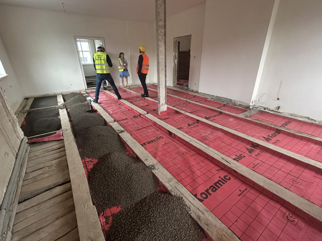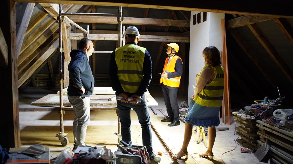 Odebrane prace to: prace rozbiórkowe, uzupełnienie tynków wewnętrznych, zagruntowanie powierzchni, przyklejenie siatki na ścianach, instalacja elektryczna bez osprzętu, prace związa-ne z istniejącym c.o. W chwili obecnej trwa układanie izolacji cieplnej z keramzytu. Nadzór inwestorski nad powyższymi pracami wykonuje firma: BTI Wojciech Skorupinski z siedzibą w Świętnie, w osobie Michała Grobel.